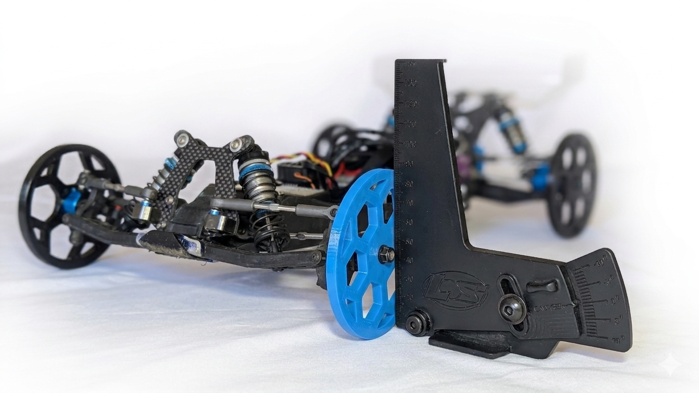 Traditional setup methods rely on mounting your car on its actual tires, but tires are one of the least consistent components on any RC vehicle. Foam inserts compress, rubber deforms, and even small variations in wear can introduce noticeable errors in your setup. That means your camber and toe settings may look correct during adjustment, but behave differently once the car is on track.